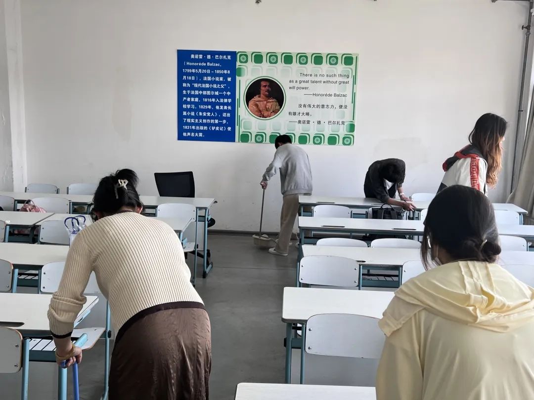 为营造干净整洁的宿舍环境,学院开展了“明亮清雅之室,同心同德之风”宿舍大扫除活动。寝室是同学们在校期间的重要生活场所,宿舍环境潜移默化地影响着每位同学的精神面貌和生活态度。在活动中,同学们自发展现了主人翁精神,同学们清扫每个角落、有序整理生活用品、擦除物品表面积灰、清洗更换床品等。同学们将寝室垃圾外带,减轻了保洁阿姨的部分压力。大家齐心协力、分工合作,营造了整洁、优美、温馨、文明的宿舍环境,打造出了别样温馨的“小家”。
